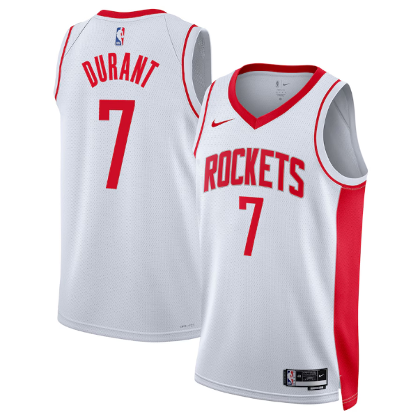 Get an iconic piece of quality Men's Houston Rockets Kevin Durant Nike White Association Edition Swingman Jersey. The high-grade construction and accurate replica design will give you a look just like the real thing.