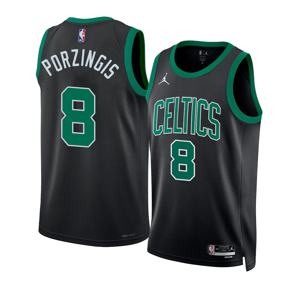 HOME>SHOP BY TEAM>Boston Celtics>Unisex Boston Celtics Kristaps Porzingis Jordan Black Statement Edition Swingman Jersey