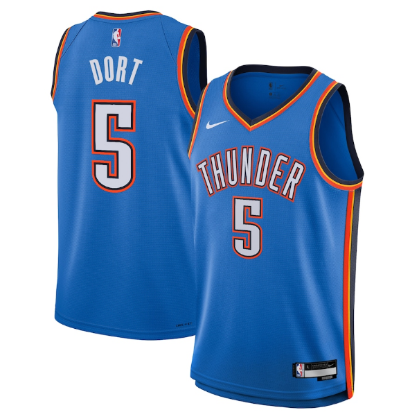 Get an iconic piece of quality Unisex Oklahoma City Thunder Luguentz Dort Nike Blue Icon Edition Swingman Jersey. The high-grade construction and accurate replica design will give you a look just like the real thing.
